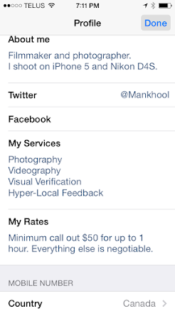 One Degree is the only app that opens up the entire world to anyone that needs information gathering on demand. Journalists, Researchers, Media Companies, Students or anyone else that needs photos, videos or other kinds of information gathering without the wait.